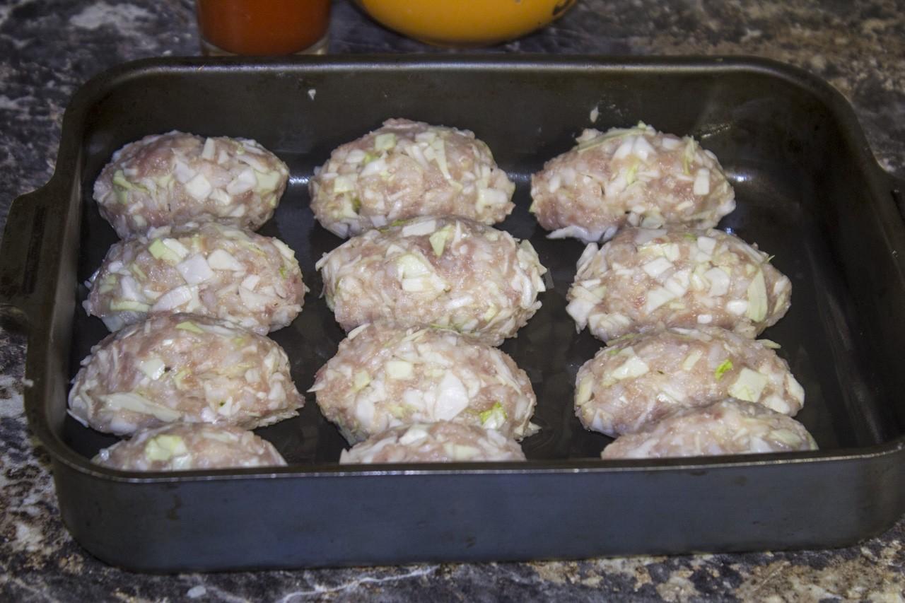 Мокрыми руками формируйте из фарша продолговатые ленивые голубцы, похожие на большие котлеты. Переложите голубцы в форму, смазанную растительным маслом. Запекайте в разогретой духовке при 180 градусах 10-20 минут, чтобы голубцы схватились и приняли форму. Как только это произошло, вынимайте их из духовки.