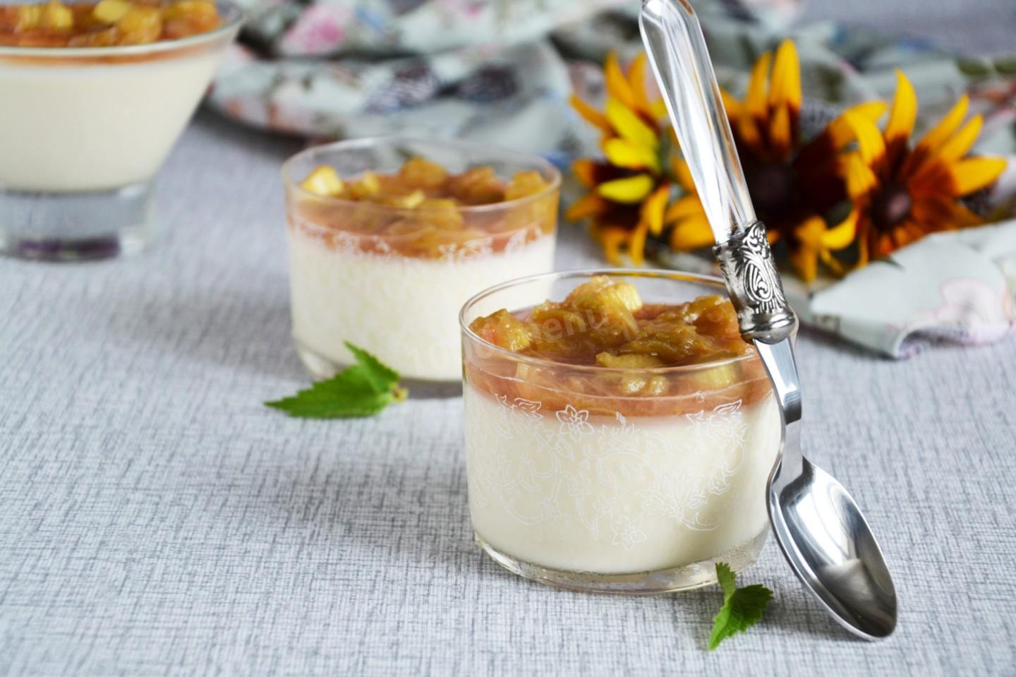 Обычная панна котта в необычном исполнении! Напоследок делюсь еще одним интересным рецептом, который придумала сама. Я уже не раз писала, что вместо торта подаю различные десерты. Выбор пал на панна котту. Но в этот раз решила сочинить что-то необычное. С первым ингредиентом - ревенем - я определилась сразу. А вот второй долго пришлось подбирать. В итоге остановилась на лимоне. Несмотря на то, что и лимон, и ревень достаточно кислые, десерт получился сладкий.