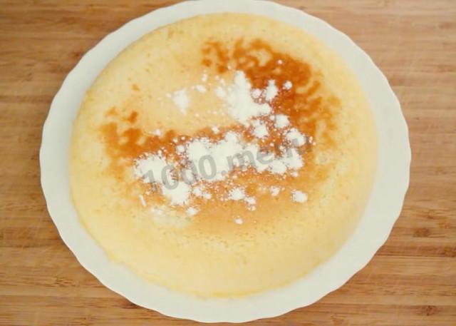 Выливаем тесто в форму, и выпекаем 25 минут в разогретой до 150 градусов духовке. Достаем готовый бисквит из духовки ( проверяем готовность зубочисткой ). Вынимаем его из формы, немного остужаем. Посыпаем сахарной пудрой и по желанию украшаем. Приятного аппетита!