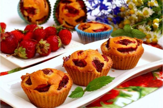 Готовь к чаю ароматную и вкусную выпечку! Радуй семью! Маффины с ягодами получаются нежными, сочными и с изумительным ароматом. Отличный вариант для угощения родных в выходной день. Или неожиданных гостей, так как готовятся быстро, просто и из доступных продуктов. Ягоды можно брать любые - землянику, вишню, черешню, малину, ежевику, чернику. Подойдут и кусочки фруктов.