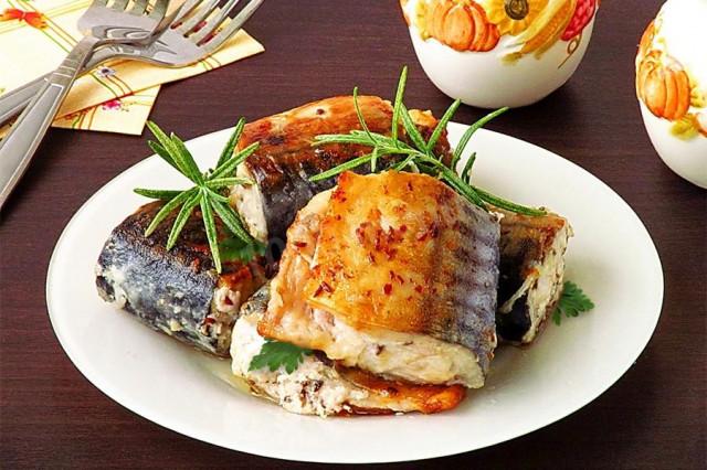 2. Рыбу нарезаем кусками, солим, оставляем на полчаса. Затем щедро натираем каждый кусок подготовленным маринадом и оставляем еще на час.