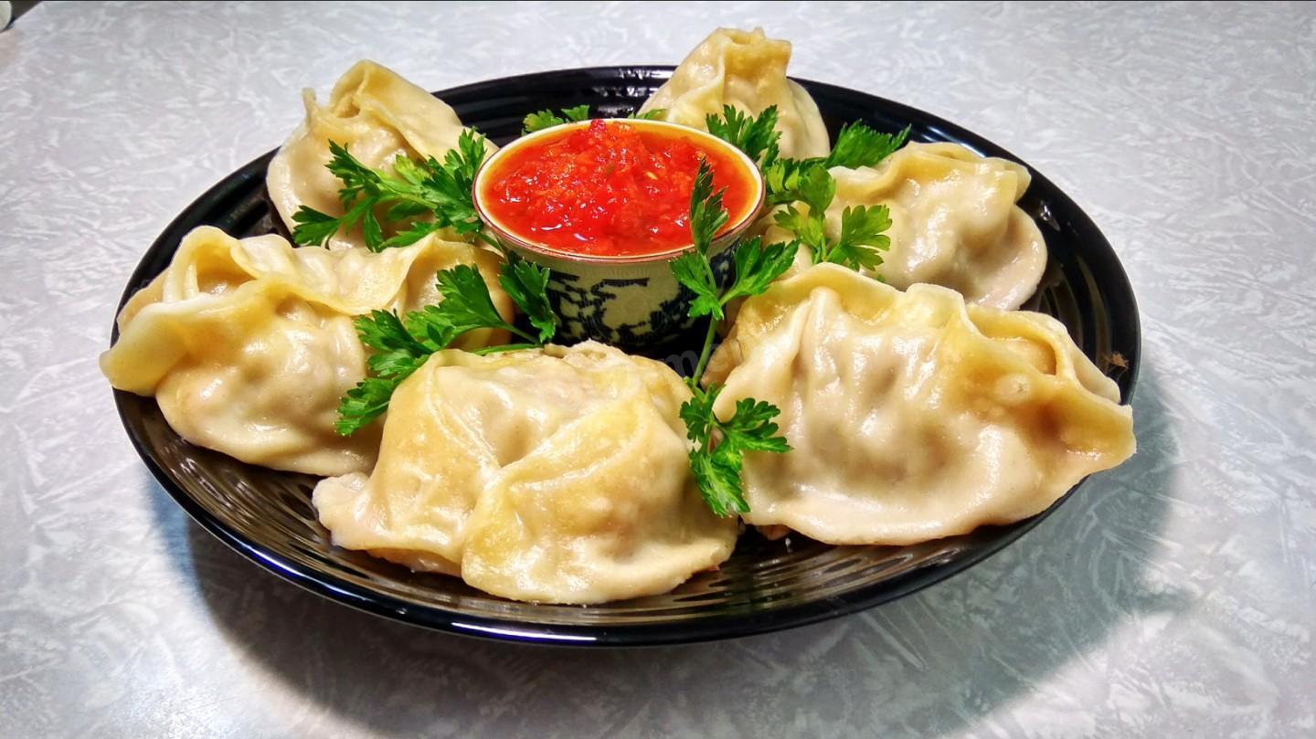 Горячие манты выложите на блюдо и подавайте к столу с аджикой. Приятного аппетита!