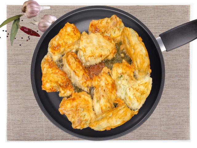 Нежное мясо минтая с хрустящей аппетитной корочкой! Весь вкус и аромат жаренной рыбы в остается запечатанный внутри, за счет кляра. Рыбу подают с различными гарнирами например с пюре или гречневой кашей, свежие овощи хорошо дополняют это блюдо.