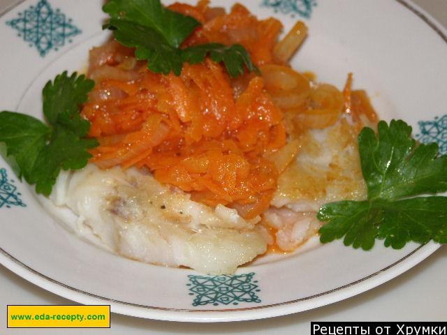 Лук порезать колечками, на средней терке натереть морковь. Лук обжарить на растительном масле. К нему добавить морковь и жарить все это 5 минут. Затем добавить томатную пасту и снова жарить 5 минут. После этого добавить к овощам 50 мл воды, и тушить еще 5 минут. Посолить, добавить уксус, сахар, и приправы. Тушить еще 10 минут. На готовую рыбу выложить горячий маринад. Затем блюдо остудить и поместить в холодильник на 3-4 часа. Подавать минтай под маринадом можно и холодным, и теплым, как вам больше нравится. Приятного аппетита!