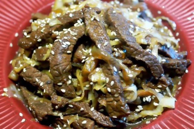 Вкусное и простое мясо. С капустой, поэтому самодостаточное! Это не просто мясо с соусом на сковороде, это, можно сказать, полноценный ужин. Подай к нему свежие овощи и хрустящий теплый хлеб - и радость и счастье сядут с вами за стол.