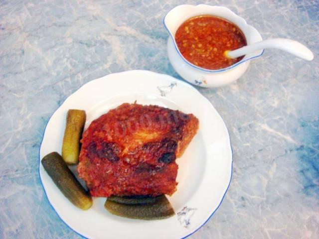 Для этого в кетчуп добавить соль, перец, измельченный в чеснокодавилке чеснок, натертый на мелкой терке лук.
