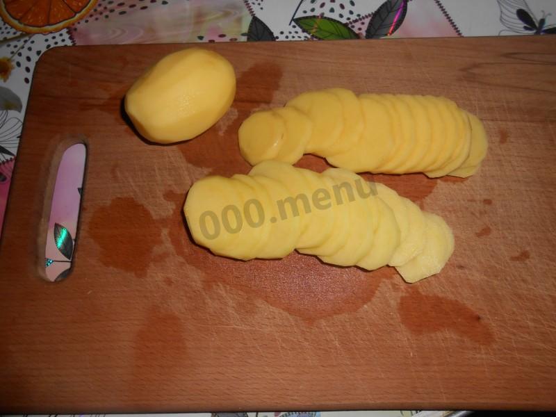 Картофель нарезать кружочками толщиной примерно 3-4мм. Если нарезать очень толсто, то блюдо будет значительно дольше готовиться...