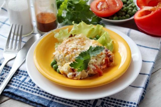 Мясо по французски со свежими томатами и филе курицы