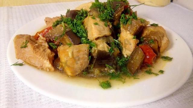 Добавить порезанные баклажаны, посолить, тушить еще 10 минут