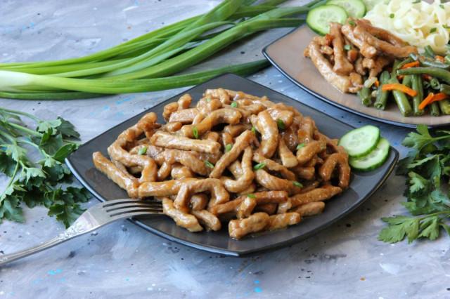 Вкуснейшее, сочное мясо, можно готовить буквально за минуты. Если воспользоваться техникой Стир - фрай. Может не всем знакомо это словосочетание, но как это происходит, точно видели все хотя бы в фильмах. Когда готовят в вок сковороде, обжаривая продукт в раскалённом масле при постоянном помешивании.