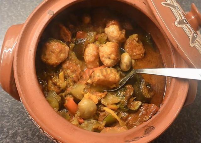 Одно из самых популярных блюд Балканского полуострова. Основным ингредиентом можно использовать телятину или баранину. Готовится обязательно в керамической посуде или в горшочках.