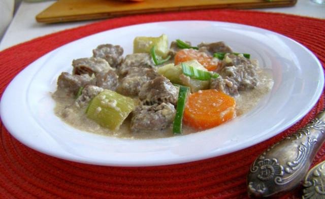 Мясо тушеное с овощами в сливках