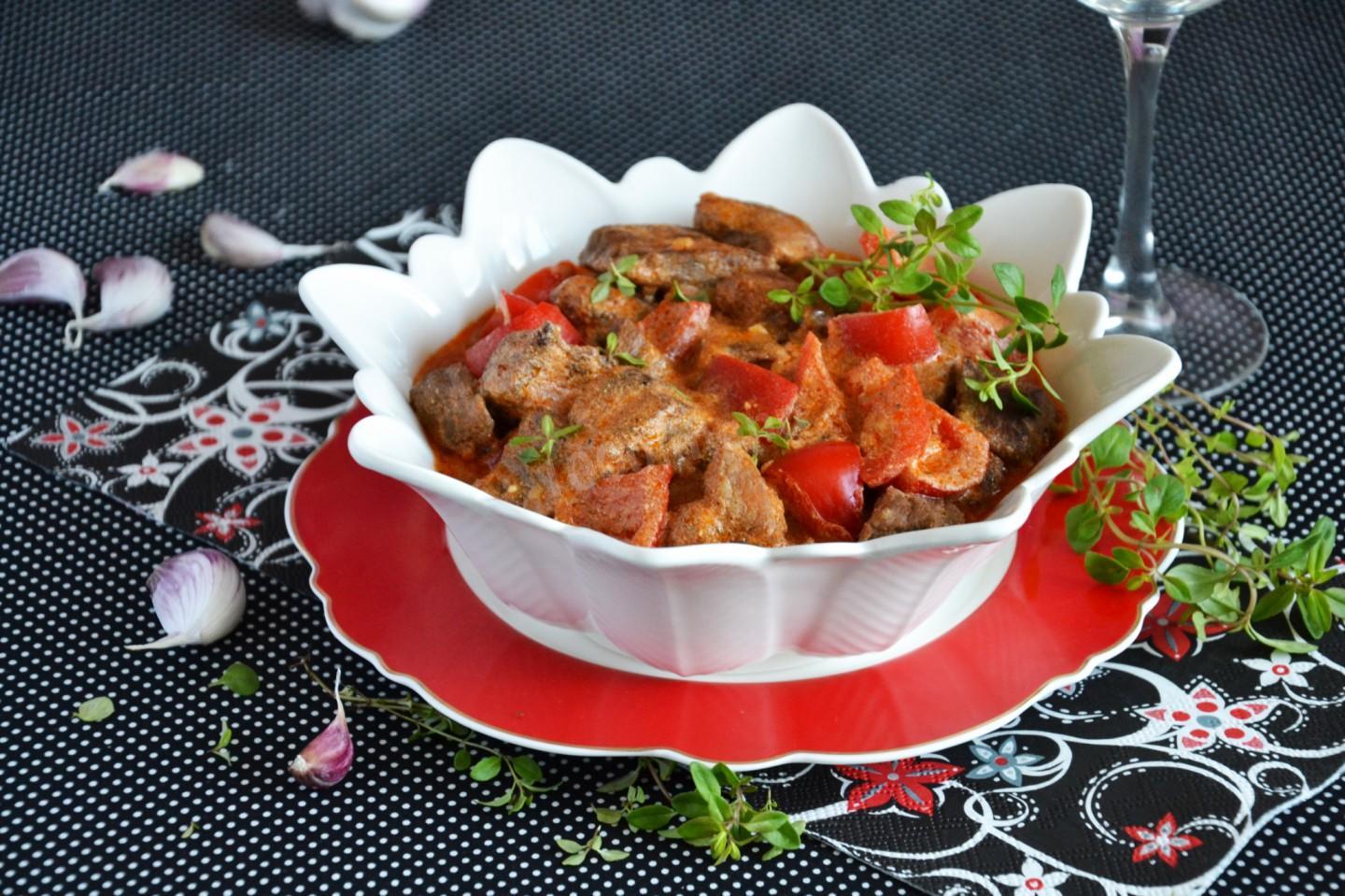 Вкусная говядина с томатно-сметанным соусом. По этому рецепту можно также приготовить свинину. Вместо томатной пасты можно использовать свежие помидоры, которые нужно натереть на терке, либо томатный соус.