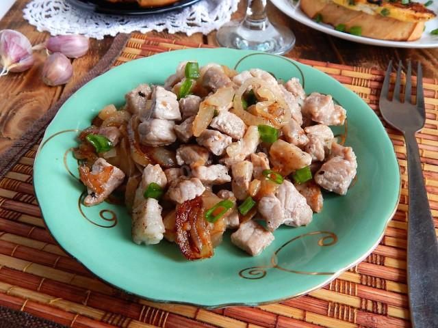 Вкусное, быстрое в приготовлении и сытное блюдо! Мясо, жареное с луком на сковороде, блюдо для таких случаев, когда хочется мяса без различных добавок в виде овощей, специй и приправы. Как правило, такое блюдо любят все мужчины, особенно, если это жареная свинина, сочная, жирная и вкусная. Получается, конечно, более калорийно, чем жареная говядина, но, действительно, очень вкусно, и иногда можно позволить себе такое блюдо даже дамам, следящим за своей фигурой. Процесс приготовления прост и быстр, что нравится современным хозяйкам.