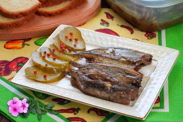 Закрываем крышку, устанавливаем режим тушения на 2 часа. Во время приготовления крышку не открываем. После звукового сигнала домашние шпроты полностью готовы, но подавать к столу их еще рано. Рыба по этому рецепту употребляется в холодном виде, значит можно оставить ее в чаше или переложить в другую емкость и дождаться полного остывания, после чего снимать пробу.