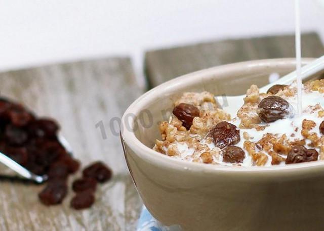 Перебираем хлопья от шелухи и промываем. Наполняем кастрюлю водой и доводим ее до кипения. Солим по вкусу и высыпаем хлопья в кастрюлю, перемешиваем. Варим почти до готовности. Если хлопья обычные, на их варку уйдет 15 минут, для мелких хлопьев достаточно трех минут. Когда каша запыхтит, наливаем в нее молоко и кладем изюм .