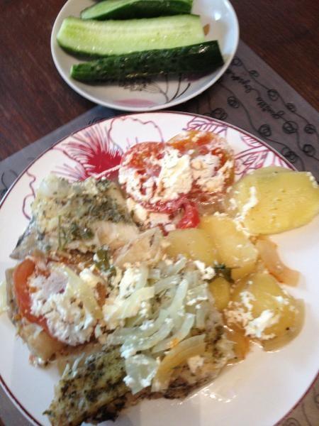 Средиземноморский вкус и аромат на вашем столе. Конечно -быстрота и удобства, все сложил в фольгу и жди, когда подойдет время! Нет ничего вкуснее свеже приготовленого морского окуня, мясо у него белое, нежное, без костей(почти), не удержалась и купила 2 тушки, а теперь делюсь с Вами рецептом!