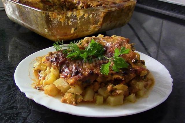 Включить разогреваться духовку до 200 градусов. Смазать глубокую форму для выпекания растительным маслом и приступать к укладыванию слоев мусаки:
