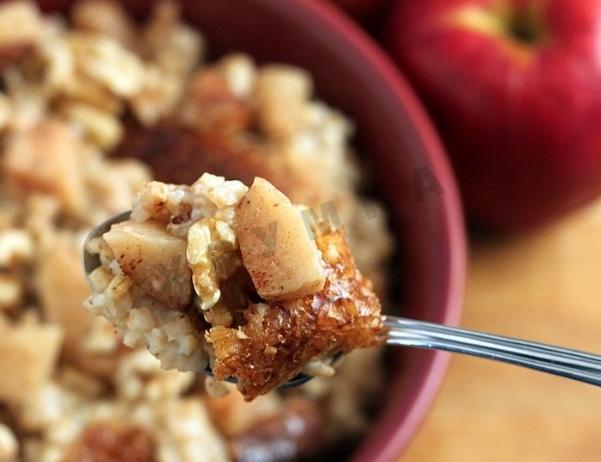 Ночная овсяная каша с яблоками и орехами в мультиварке