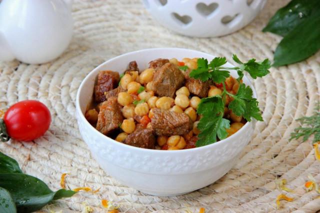 Готовый нут должен быть мягким, но оставаться целым. Мясо получается мягкое и сочное, густая, ароматная подлива. Подавать горячим как самостоятельное блюдо, посыпав зеленью, дополнительно подать овощи.