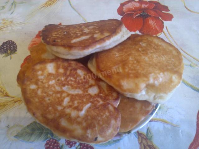 В сыворотку добавить соду и подождать немного, чтобы она погасилась. Далее закладываем сахар, соль и масло, все перемешать и добавить муку, чтобы консистенция была как у густой сметаны. Все, начинаем жарить.