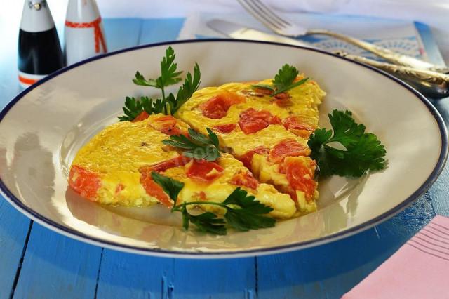 Пробуй новый вариант приготовления омлета. Омлет с помидорами получается необычно вкусным, если приготовить его в духовке! Блюдо не похоже на классический омлет: к нему добавлены овощи, которые придают яркость и дополнительный вкус. Подавать такой омлет можно на завтрак или на ужин. С кусочком зернового хлеба будет очень вкусно!