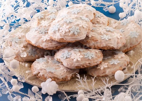 Полностью остывшие пряники можно покрывать глазурью (а можно и не покрывать). Я еще чисто для декоративности посыпала вафельными снежинками. Наслаждайтесь!