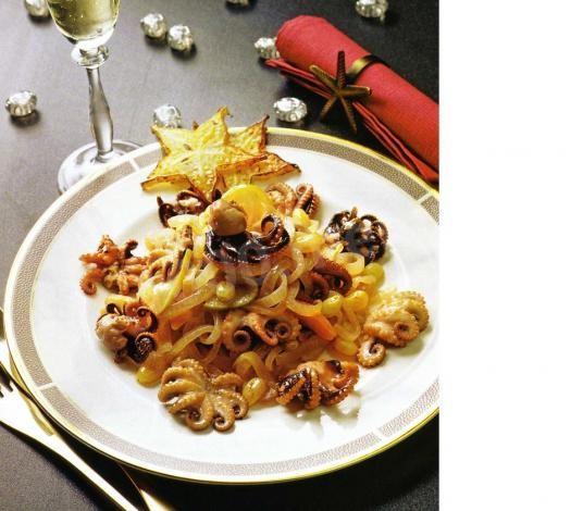 Рекомендую всем попробовать экзотическое блюдо, кулинарный рецепт которого, пришёл из солнечной Греции. Греческая кухня традиционно широко использует рецепты блюд из морепродуктов. Вот пример рецепта исконно греческой еды. Это блюдо точно украсит любой праздничный стол.