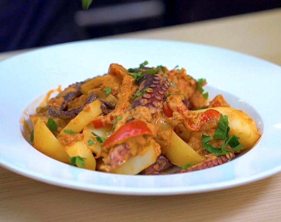 Достать из кастрюли осьминога. Отрезать щупальца.