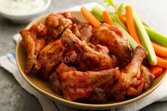 Блюдо с перчинкой для дружеской компании! Острые куриные крылышки в духовке готовить очень легко и просто. Они получаются жгучими и пряными внутри с аппетитной коричневой корочкой. Это блюдо прекрасно подойдет в качестве закуски для пивной вечеринки. Его также можно приготовить в качестве основного горячего, разбавив острый вкус крылышек гарниром из свежих овощей и зелени.