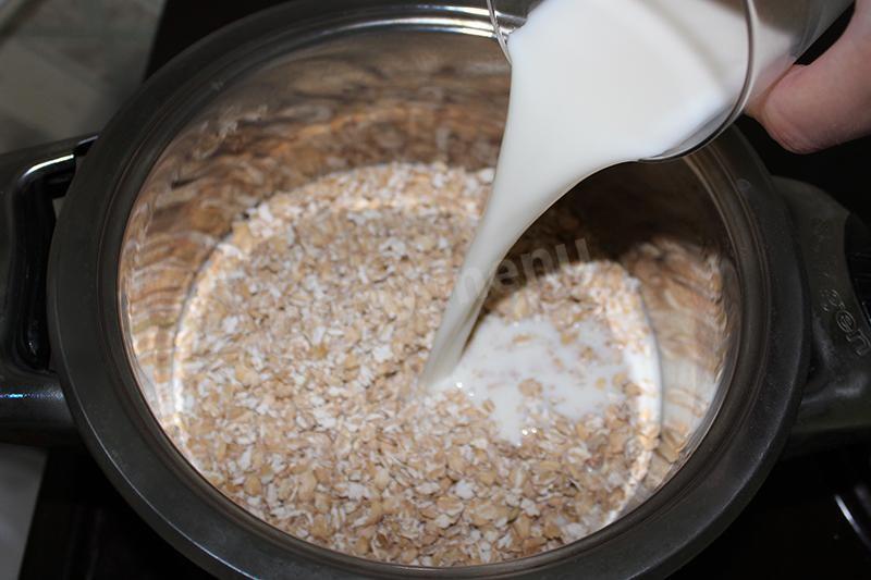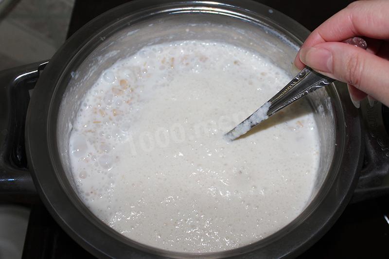 Варим овсяную кашу на медленном огне, постоянно помешивая, пока не закипит.