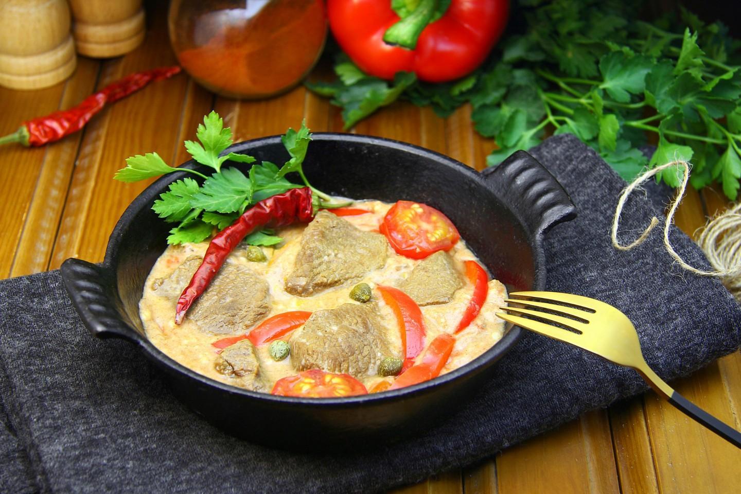 Мясо с паприкой в густом сметанном соусе. Нежная телятина, тушёная с болгарским перцем в густом соусе со сметаной. Блюдо щедро дополняется сушёной паприкой, отчего приобретает невероятно насыщенный вкус и аромат.