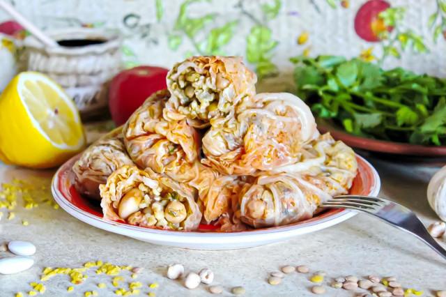 Оригинально, необычно, сытно, для постного стола! Пасуц долма — блюдо армянской кухни, которое представляет собой постные голубцы с начинкой из бобовых вместо привычного мяса. Их можно есть и теплыми, и холодными. Такая долма долго хранится в холодильнике, и от этого вкус становится только лучше.