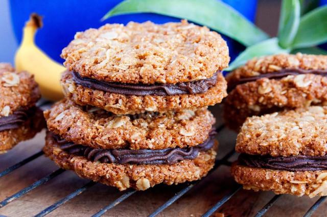 11. Перекладываем крем в кондитерский мешок, выбираем фигурную насадку. Отсаживаем немного крема на каждую половинку печенья, накрываем второй половинкой, слегка прижимаем.