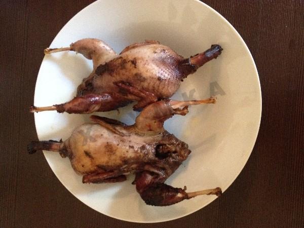 Готовим маринад. 0.2 мультистакана соевого соуса (желательно без добавок) и 1 мультистакан красного сухого вина. Далее заливаем свежих перепелок нашим маринадом и оставляем хотя бы на 2 часа.