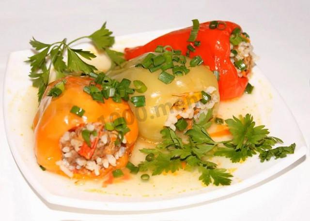 Перцы фаршированные мясом с томатной пастой в мультиварке