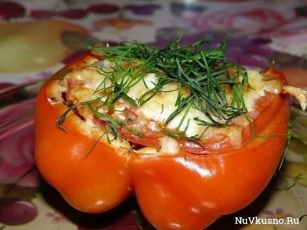 Начиняем половинки перца подготовленным как обычно мясным фаршем.