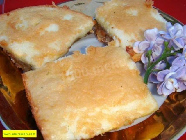 Тесто раскатать и переложить в форму, обмазанную маслом. Печь в духовке до полуготовности минут 15-20.
