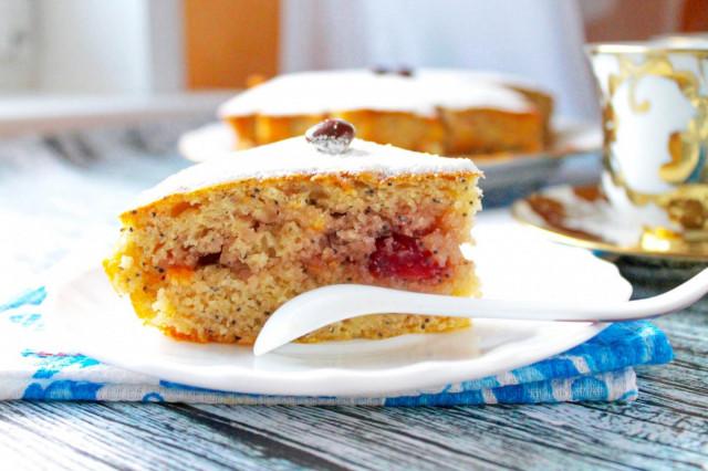 Промажьте нижнюю часть пирога на простокваше любым вареньем или сгущенкой, накройте второй частью и остудите полностью. Можете вообще ничем не пропитывать пирог, не разрезать его. Можете полить его глазурью, посыпать сахарной пудрой или оставить как есть. В любом случае, он вкусен с чаем или кофе.