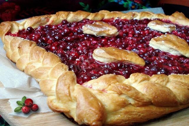 - полученной смесью смазываем бортики пирога (из остатков теста можно придумать украшение для пирога);