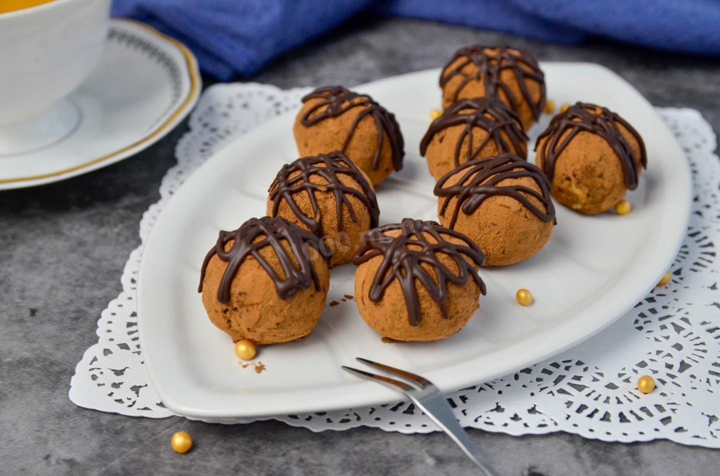 на тарелку насыпьте какао-порошок. Обваляйте каждый шарик в какао.