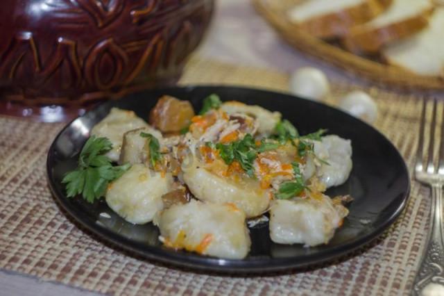 Галушки поливаем заправкой и подаем к столу! Можно пойти дальше и запечь в этом самом горшке еще минут 20. Но по мне это уже очень и очень вкусно!