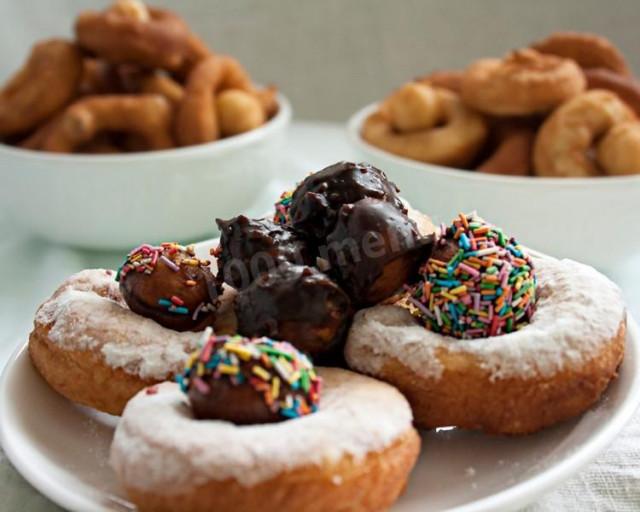 В сильно разогретое масло выложить пончики и жарить с двух сторон до образования коричневой корочки. Пончики быстро увеличиваются в объеме при жарке.