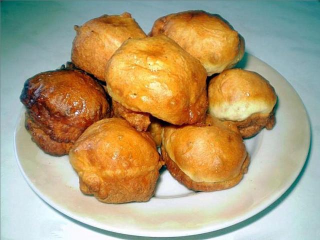 Если тесто будет жидковатым можно доложить еще немного муки. Полученное тесто накрываем салфеткой и оставляем на некоторое время при комнатной температуре. Так как оно должно настояться. Тесто для пончиков должно быть довольно таки густым (как хорошая жирная сметана из деревни), но оно не должно быть крутым. Оно должно тяжело сползать с ложки, но не литься. В казан или в толстостенную кастрюлю наливаем растительное масло, я обычно использую подсолнечное масло. Ставим кастрюлю с растительным маслом на сильный огонь и разогреваем. Затем уменьшаем огонь и чайной ложкой опускаем кусочки теста в горячее масло. Жарим до готовности. Затем. Разогреваем в небольшом сотейнике мед, предварительно перемешанную с несколькими ложками воды. В растопленный мед добавляем пряности по вкусу (корицу или черный молотый перец) и перемешиваем. На готовые пончики ложечкой наливаем теплый мед и оставляем на несколько минут. Вкусные пончики готовы, это прекрасная еда!