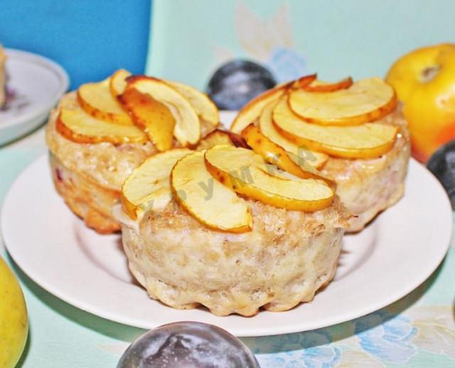 Сверху выкладываю оставшуюся овсяную массу и дольки яблок. Ставлю формочки с пудингом выпекаться в предварительно разогретую до 180 градусах духовку, и запекаем минут 30.