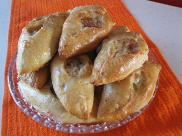 Раскатываем лепешку, выкладываем начинку, защипываем с двух сторон, оставляя дырочку в середине.
