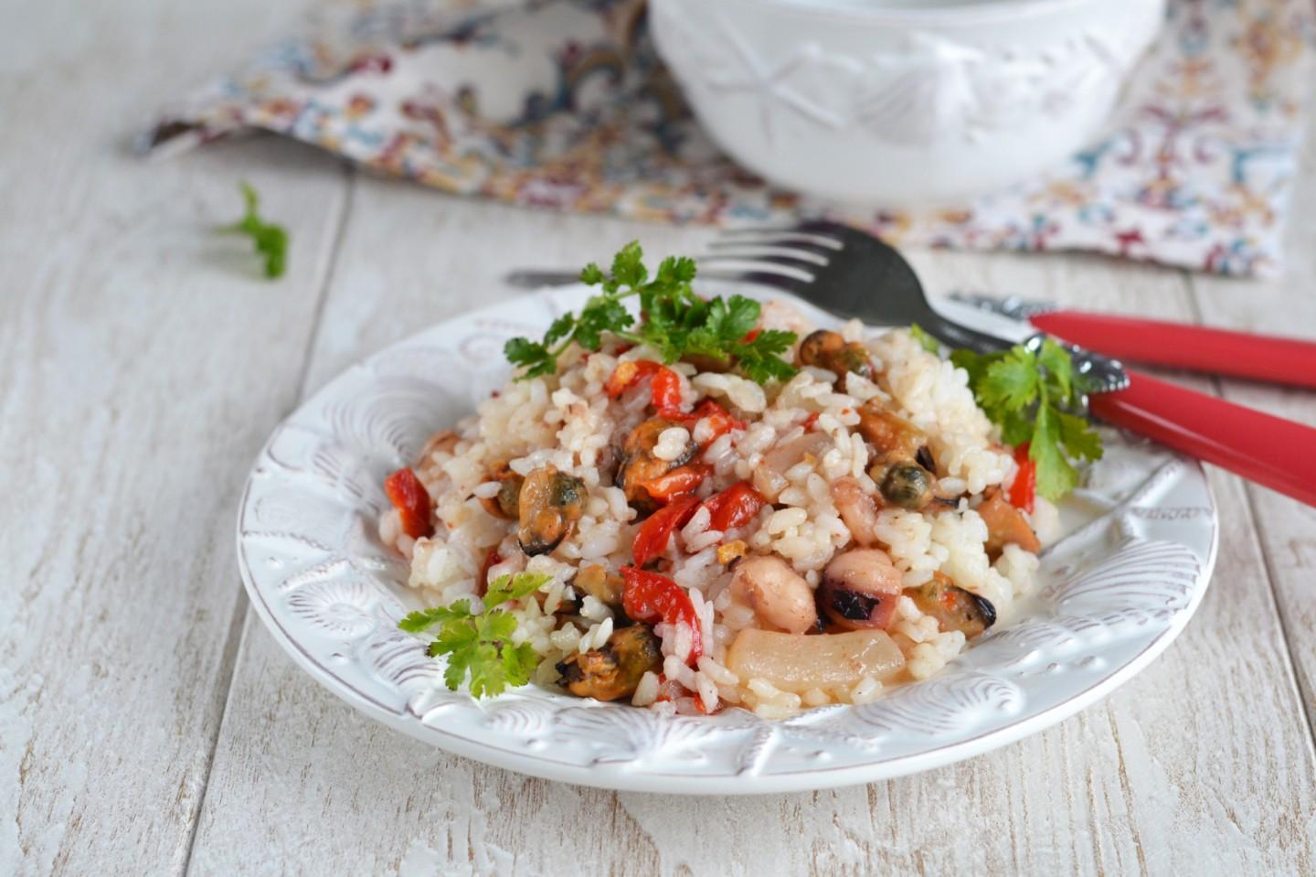 Яркое и вкусное блюдо из риса, овощей и морепродуктов. Рис с морепродуктами прекрасно сочетаются. А главное — хорошо вписываются в меню безглютеновой диеты. Это второе блюдо понравится всем членам семьи — и тем, кто вынужден придерживаться диеты, и тем, кто свободен от ограничений в питании.