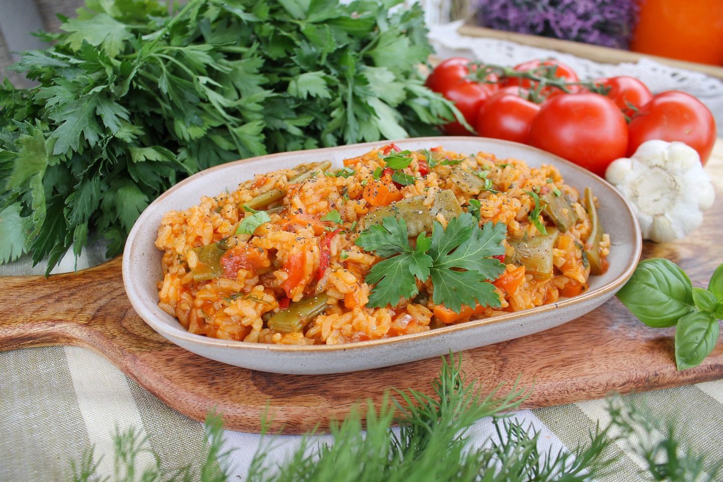 Рис со стручковой фасолью в томатном соусе