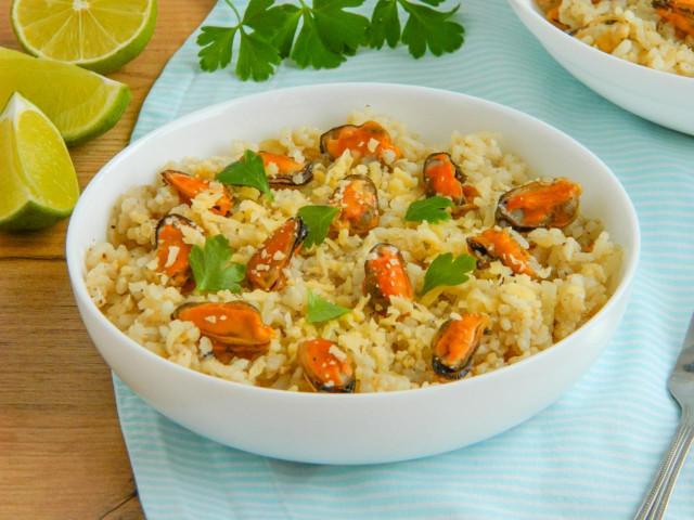 Превосходный ужин с морепродуктами в стиле итальяно. Ризотто - представитель классической итальянской кухни. В сочетании с мидиями это блюдо прекрасно подходит для романтического ужина, так как морепродукты являются мощным афродизиаком.