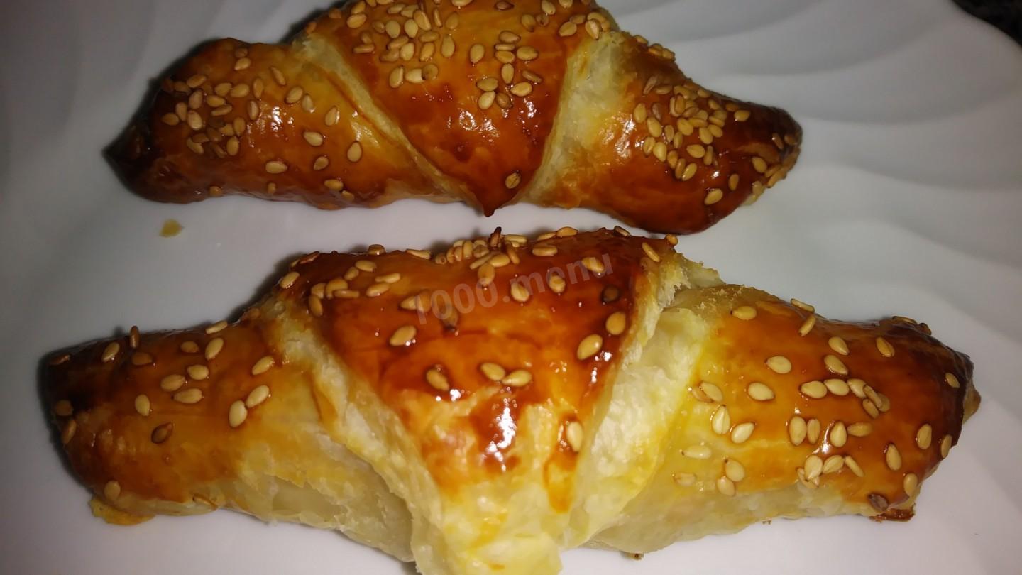 Рогалики с сыром и ветчиной из слоеного теста